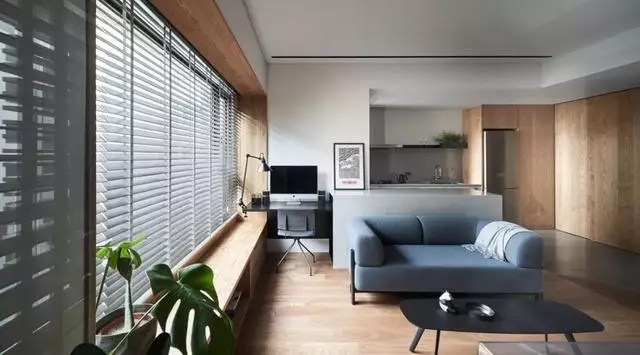 客廳空間不算大,飄窗臺(tái)直接都打造成木柜子,做舊藍(lán)的北歐風(fēng)格沙發(fā)很簡(jiǎn)單,看著就很時(shí)尚。